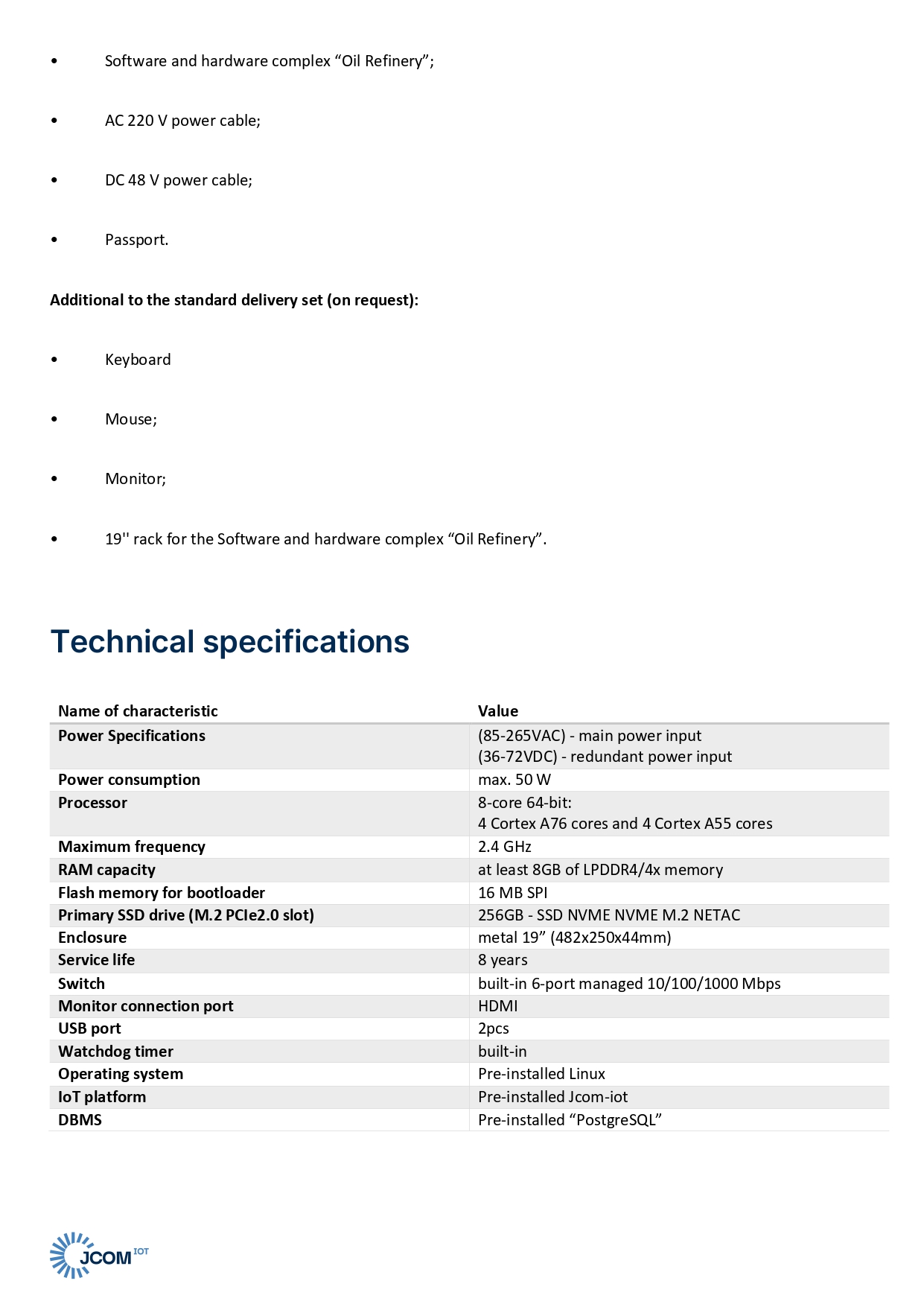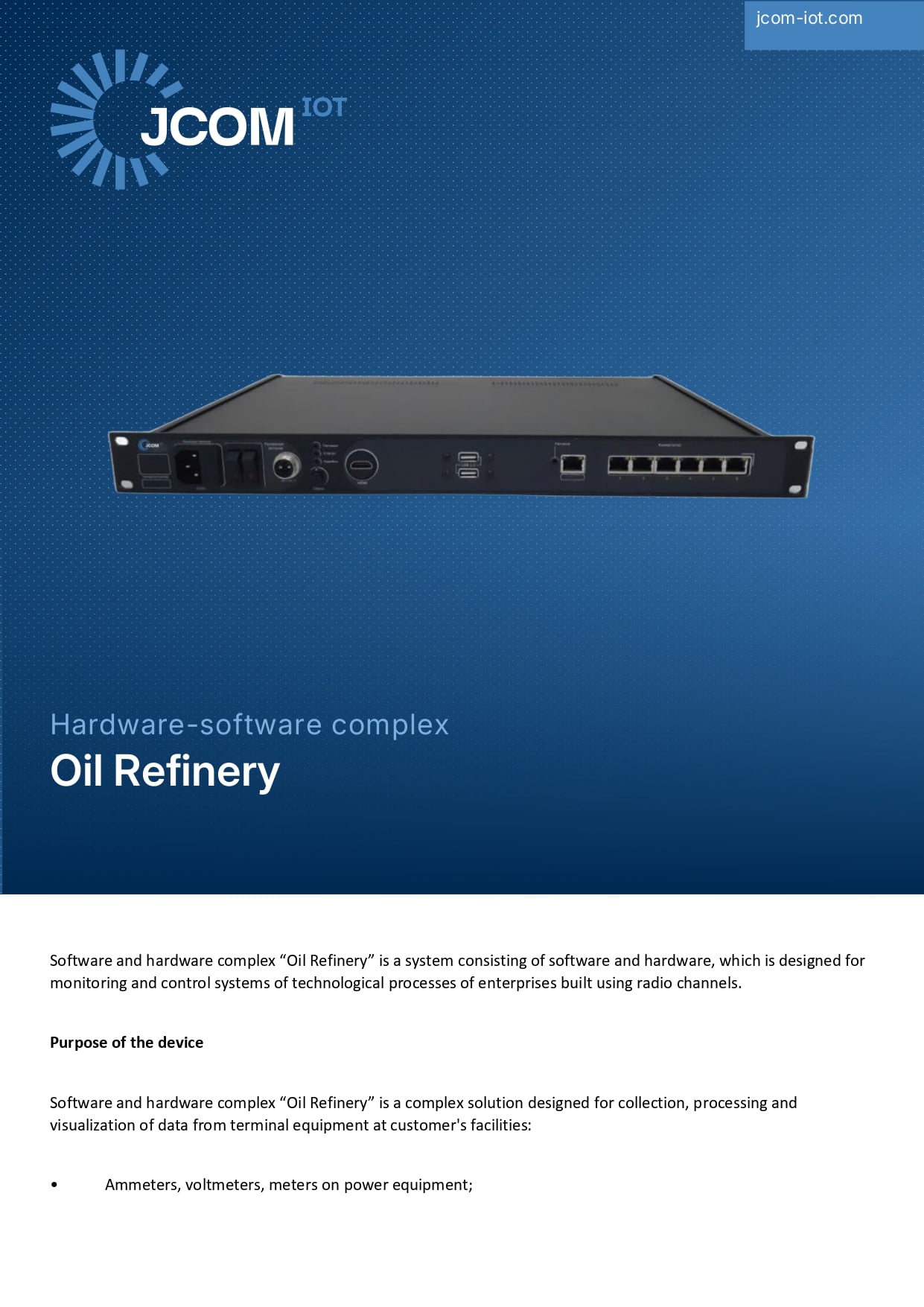 Software and hardware complex “Oil Refinery” is a complex solution designed for collection, processing and visualization of data from terminal equipment at customer’s facilities: