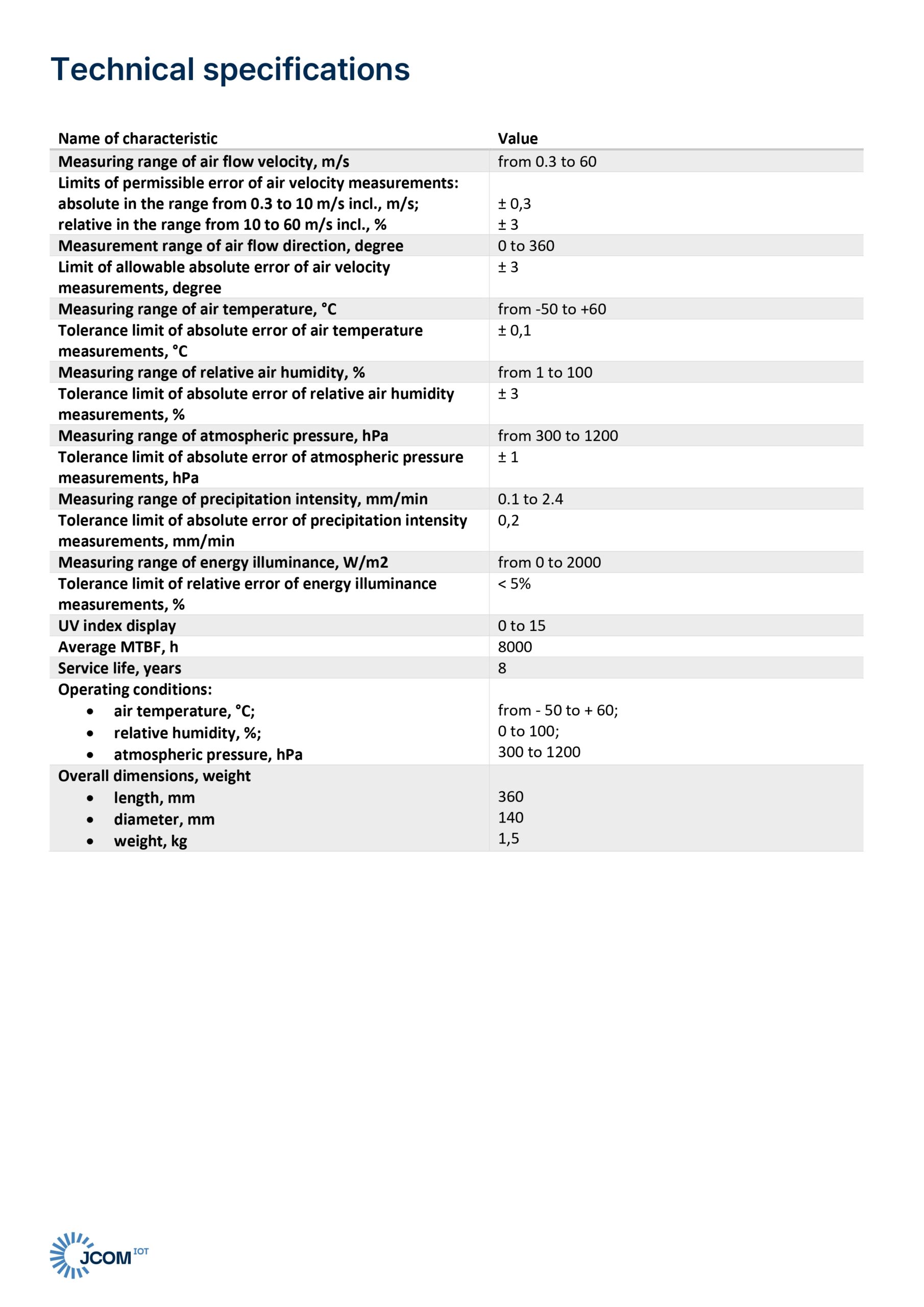 The plastic, ventilated housing is designed to protect the sensors from environmental influences and to ensure trouble-free operation of the weather station. The warranty period is 1 year from the date of commissioning.
