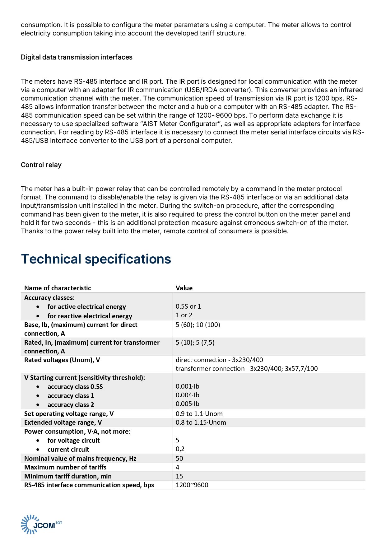 Consumer and service data are displayed on the liquid crystal display (LCD) located on the front panel of the meter. The meter can be operated autonomously or in an automated system for collecting data on electricity consumption. It is possible to configure the meter parameters using a computer. The meter allows to control electricity consumption taking into account the developed tariff structure.