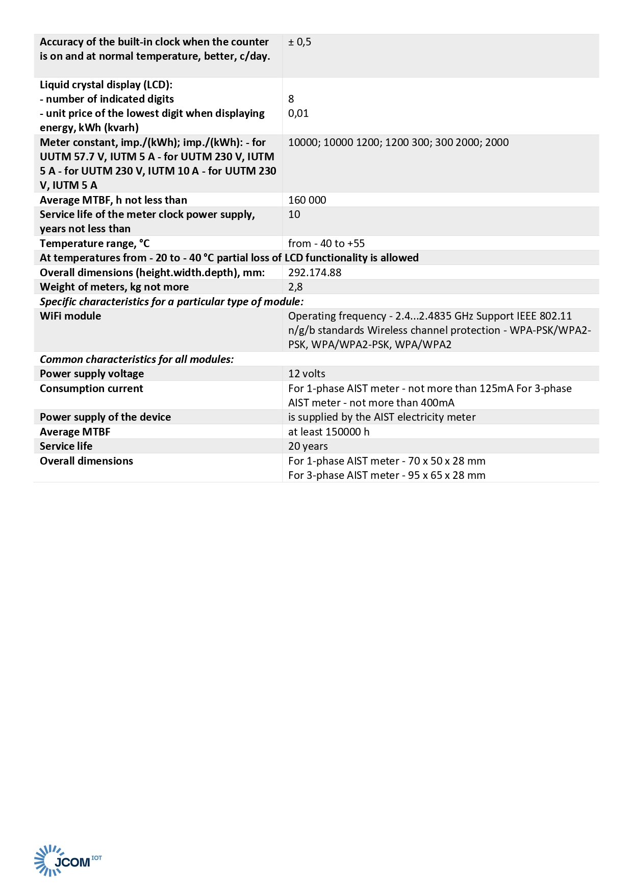 WiFi module – The operating frequency of information transmission from the meters is 2.4…2.4835 GHz.