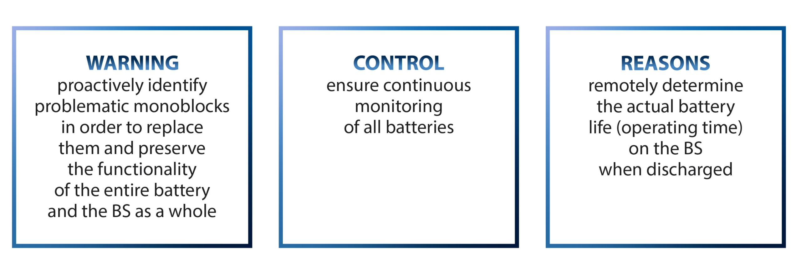 - Timely identification of faulty cans and groups of batteries, notification of maintenance personnel