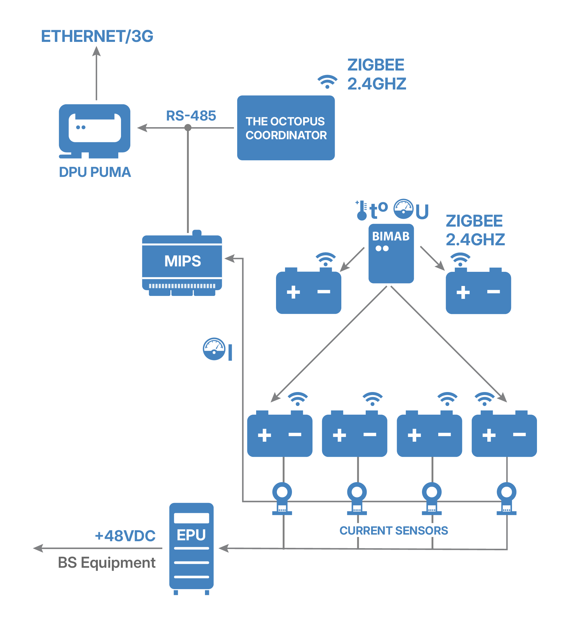 The battery monitoring system is used to perform remote testing of batteries directly connected to base station rectifiers.